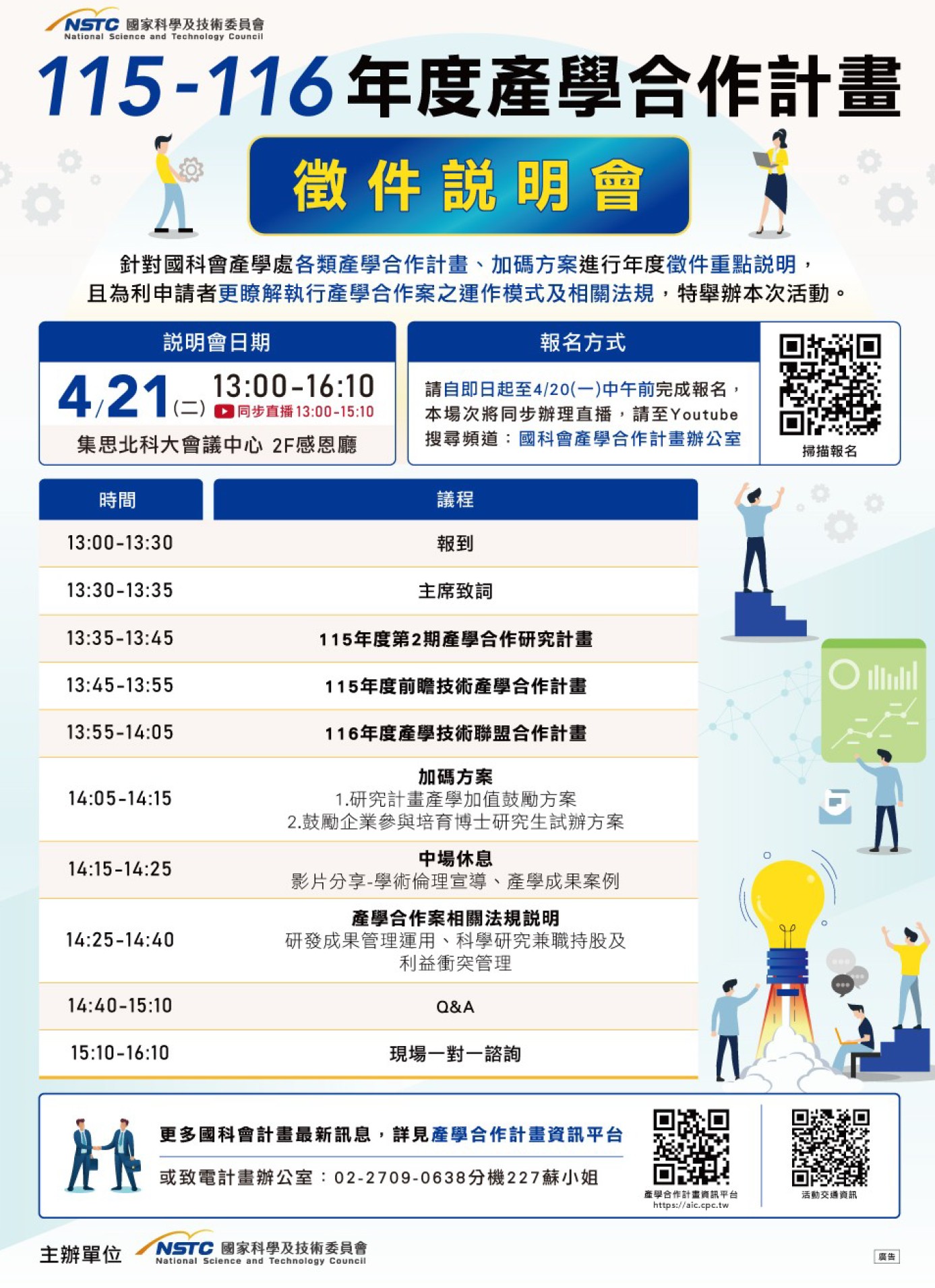 【徵件說明會】國科會115-116年度產學合作計畫徵件說明會115/4/21